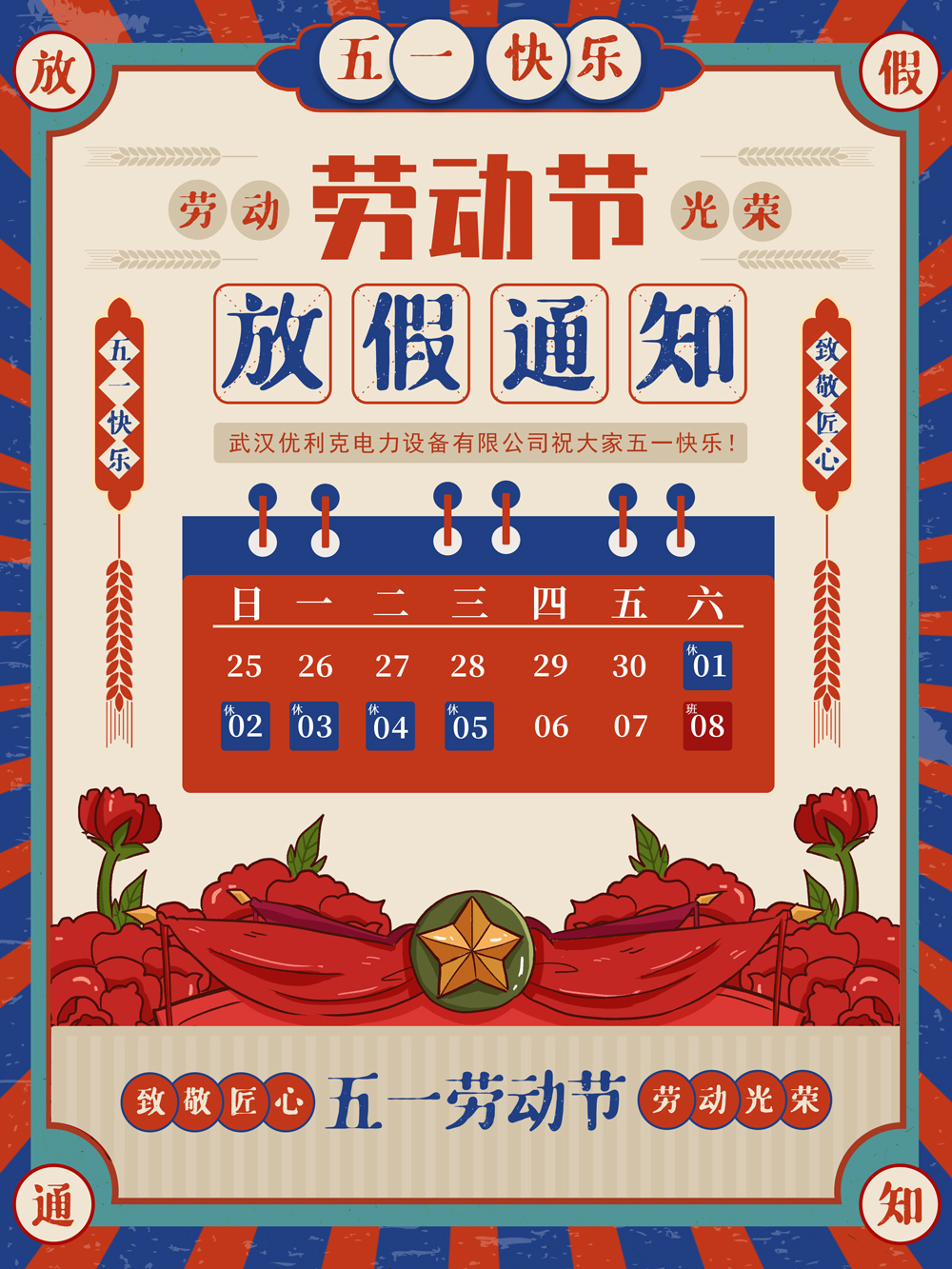 在這難得的歡慶之時,武漢優利克電力設備有限公司全體員工祝您節日愉快!