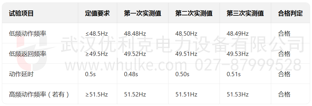 觀察裝置是否按預設定值(動作頻率、返回頻率、動作延時等)準確動作,以此驗證頻率保護的 “選擇性、速動性、靈敏性、可靠